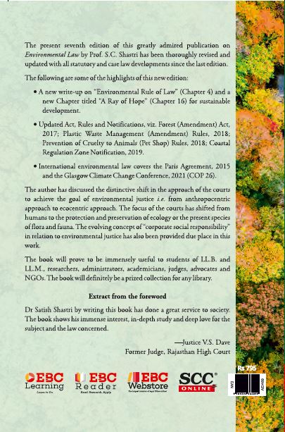 The present seventh edition of this greatly admired publication on Environmental Law by Prof. S.C. Shastri has been thoroughly revised and updated with all statutory and case law developments since the last edition.