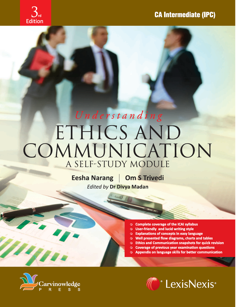 The aim of ‘Understanding Ethics and Communication: A Self-study Module’ is to help CA Intermediate (IPC) students by clearly explaining, analyzing, and evaluating important Ethics and Communication concepts. Our approach in writing this book was essentially: to write an easy-to-understand textbook that students feel comfortable with but without compromising on the academic rigour. The book has been divided into sixteen chapters and an appendix has been provided for brushing up basic language skills. Organization of the chapter provides a student friendly approach to the subject of Ethics and Communication. The authors have tried to adopt a user-friendly writing style that gives clear and concise explanations to help students engage readily with the content and grasp complex concepts easily.