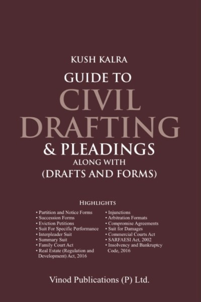 Guide to Civil Drafting & Pleadings by Kush Kalra is a practical and comprehensive manual designed to explain the fundamentals and advanced aspects of civil drafting. The book presents a structured approach to pleadings under various civil and commercial laws, supported by illustrative drafts and statutory forms, making it a ready reference for everyday legal practice.