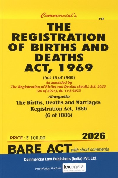 This 2026 edition of the Registration of Births and Deaths Act, 1969 presents the law governing the compulsory registration of births and deaths in India, updated to reflect the amendments introduced by the Registration of Births and Deaths (Amendment) Act, 2023. The Act forms the backbone of India’s civil registration system and lays down the legal framework for recording vital events essential for identity, governance, and public administration. Published as a Bare Act with short comments, this volume ensures readers have access to the exact statutory text in force, making it a dependable reference for legal, academic, and official use.