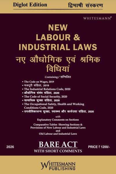 This diglot edition presents India’s new labour and industrial law framework through a consolidated bare act format with short explanatory comments. It brings together the four labour codes—Wages, Industrial Relations, Social Security, and Occupational Safety, Health and Working Conditions—offering an updated statutory reference for understanding the restructured labour regime. The bilingual presentation ensures clarity and accessibility while reflecting the current legislative position as applicable across sectors.