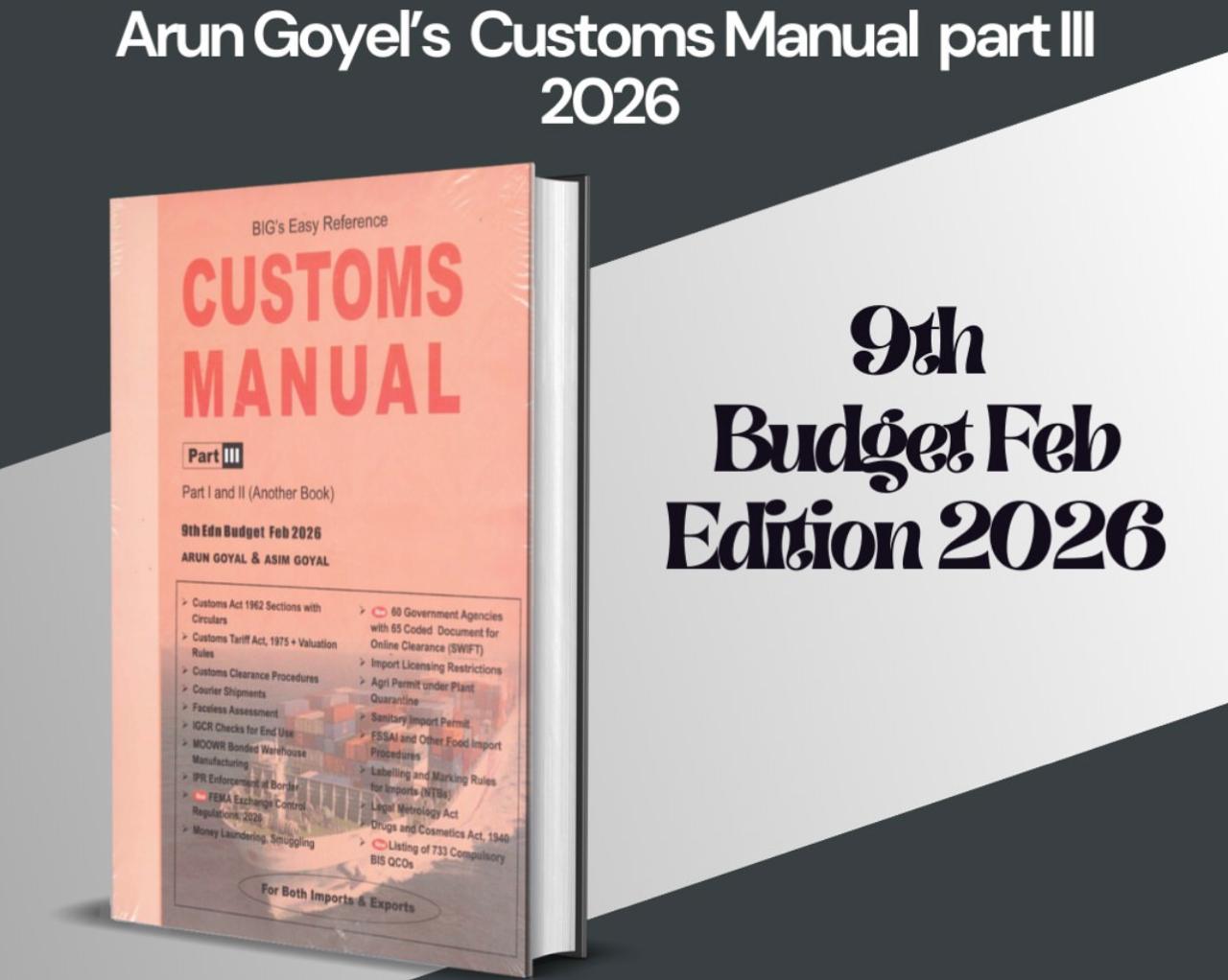 BIG’s Easy Reference – Customs Manual (Part III), 9th Budget Feb Edition 2026 is a comprehensive and practice-oriented reference covering India’s customs framework as updated by the 2026 Budget. The manual consolidates statutory provisions, tariff regulations, valuation principles, procedural compliance requirements, and allied regulatory controls applicable to imports and exports. Designed as an operational guide, it integrates customs law with related regulatory regimes affecting cross-border trade, ensuring clarity for both advisory and compliance functions.
