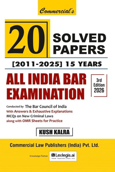 This 3rd Edition of Commercial's 20 Solved Papers (2011-2025) - 15 Years All India Bar Examination, updated up to 2026, serves as a comprehensive and reliable resource for candidates preparing for the All India Bar Examination (AIBE) conducted by the Bar Council of India. Designed specifically to meet the examination requirements, this book provides solved papers from the past 15 years (2011-2025) with answers and exhaustive explanations, making it an essential tool for thorough preparation and self-assessment.