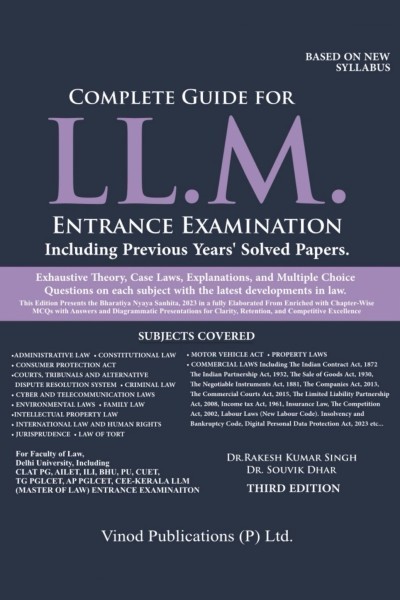 3rd Edition of Complete Guide for LL.M. Entrance Examination Including Previous Years' Solved Papers by Rakesh Kumar Singh and Souvik Dhar is a comprehensive preparation manual designed for aspirants of LL.M. entrance examinations across India. Aligned with the latest syllabus and recent legal developments, the book provides in-depth coverage of core and emerging areas of law, including the incorporation of the Bharatiya Nyaya Sanhita, 2023. It serves as a one-stop resource for conceptual clarity, exam-oriented preparation, and practice through previous years' papers.